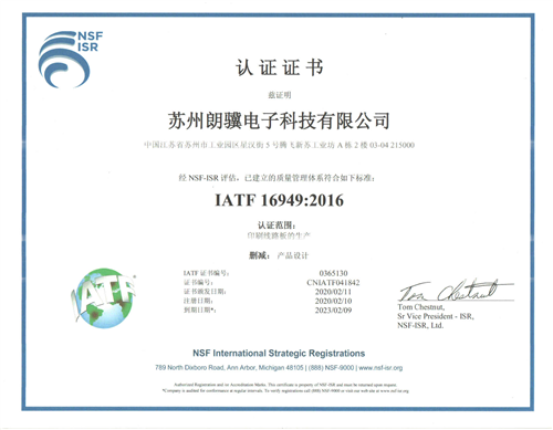 2020年(nián)02月11日(rì),蘇州朗骥通過IATF16949質量管理(lǐ)體(tǐ)系認證